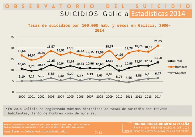 MÁXIMO HISTÓRICO DE SUICIDIOS EN GALICIA EN 2014.